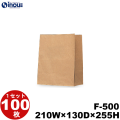 角底袋 紙袋 茶 未晒 クラフト 無地 F-500 210W×130D×255H 100枚 日本製