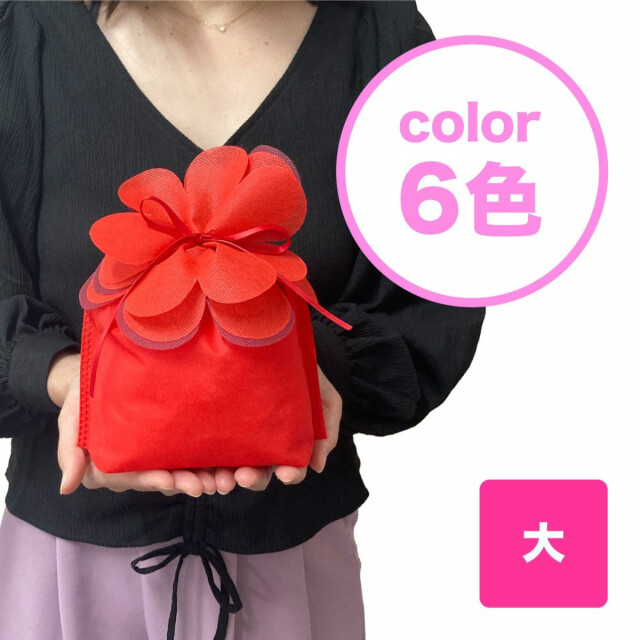 ピンクの小を購入しました。 本体部分の生地にもう少し厚みが欲しかったなと感じたのと、花部分のリボンが中に入ってしまって引き出すのに苦労しました。 でもとても可愛いらしく、何点かまとめて置いた時に売り場が華やかになりました。 |
